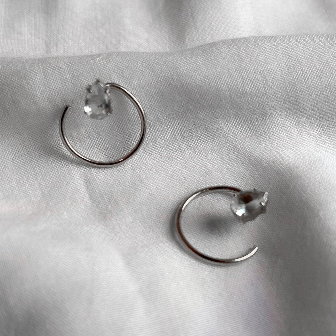 Brinco feminino prateado com zircônia cristal e pino com design que surpreende.