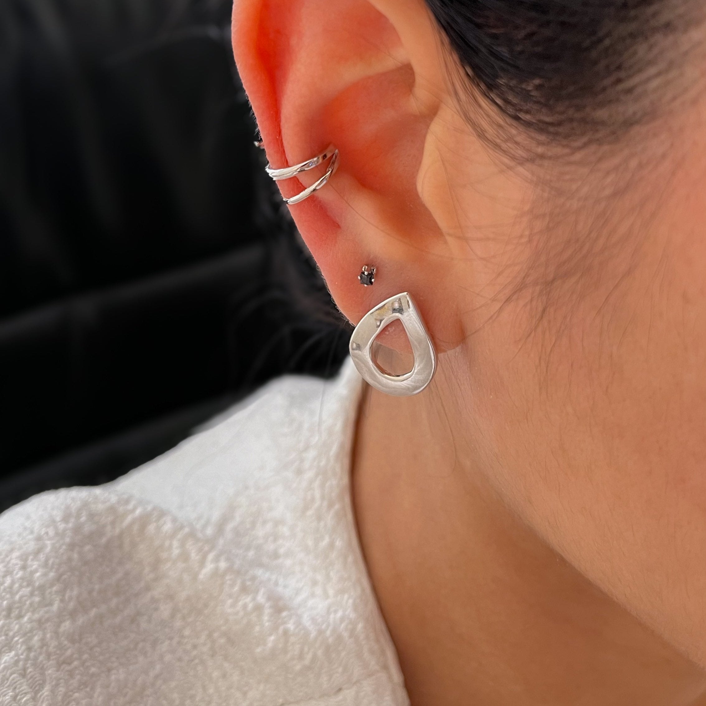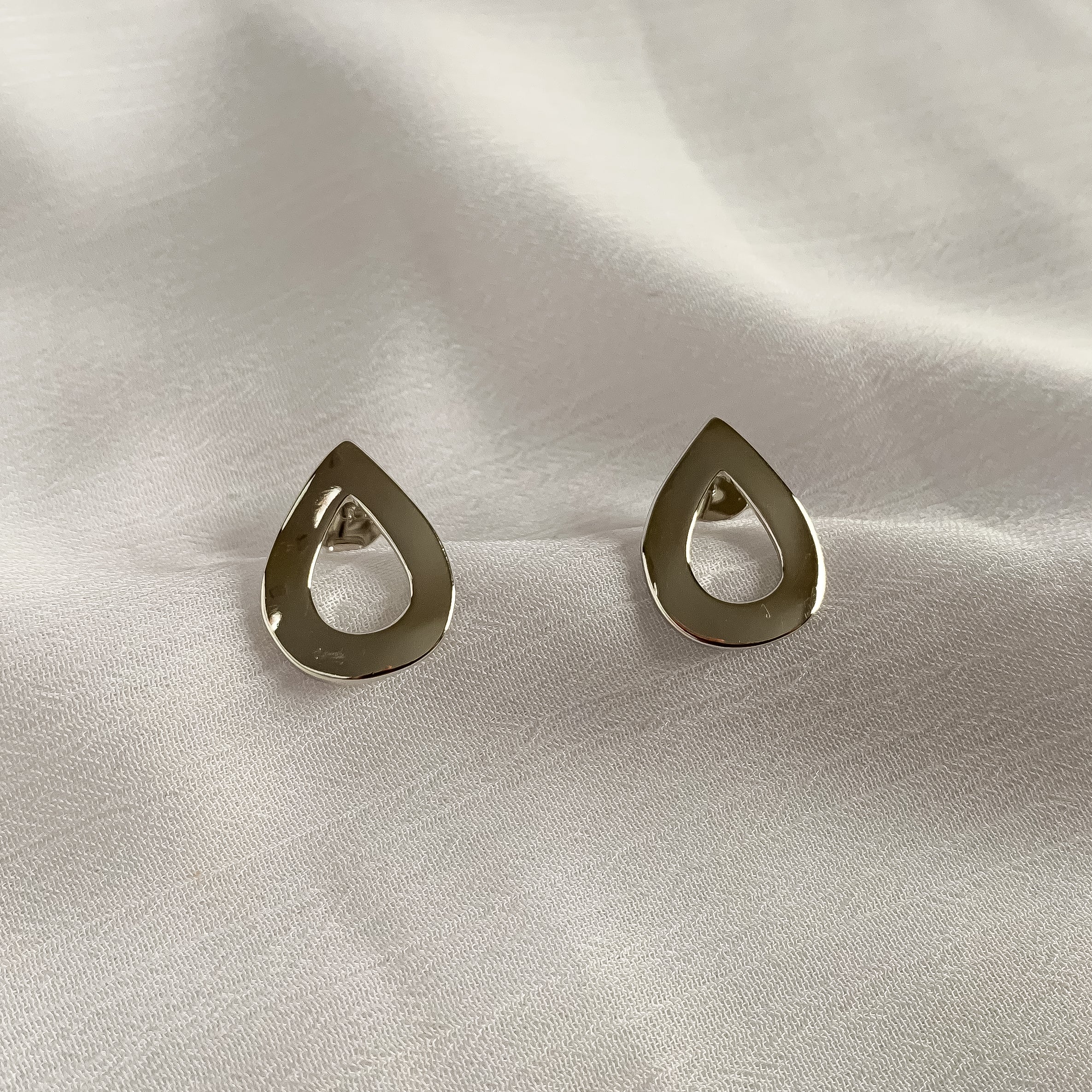 Brinco feminino dourado em formato de gota com centro vazado. Sofisticado, feminino e atemporal.