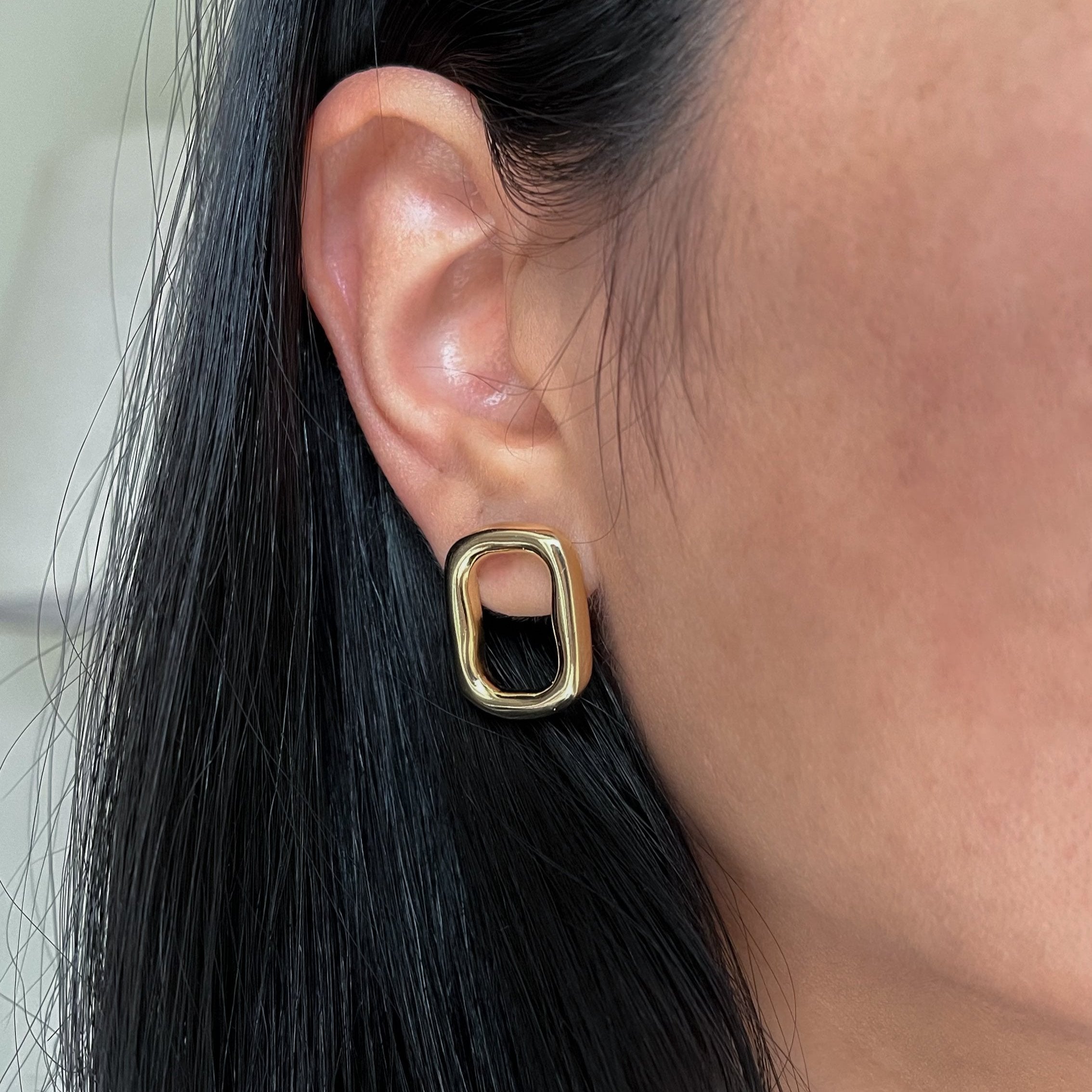 O Brinco Madrid é uma joia moderna e cheia de personalidade, com design retangular orgânico vazado que exala elegância. Altamente sofisticado, este brinco é a escolha perfeita para quem busca um acessório marcante e distinto, capaz de transformar qualquer look com um toque de estilo e presença.