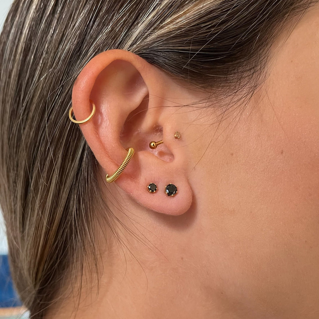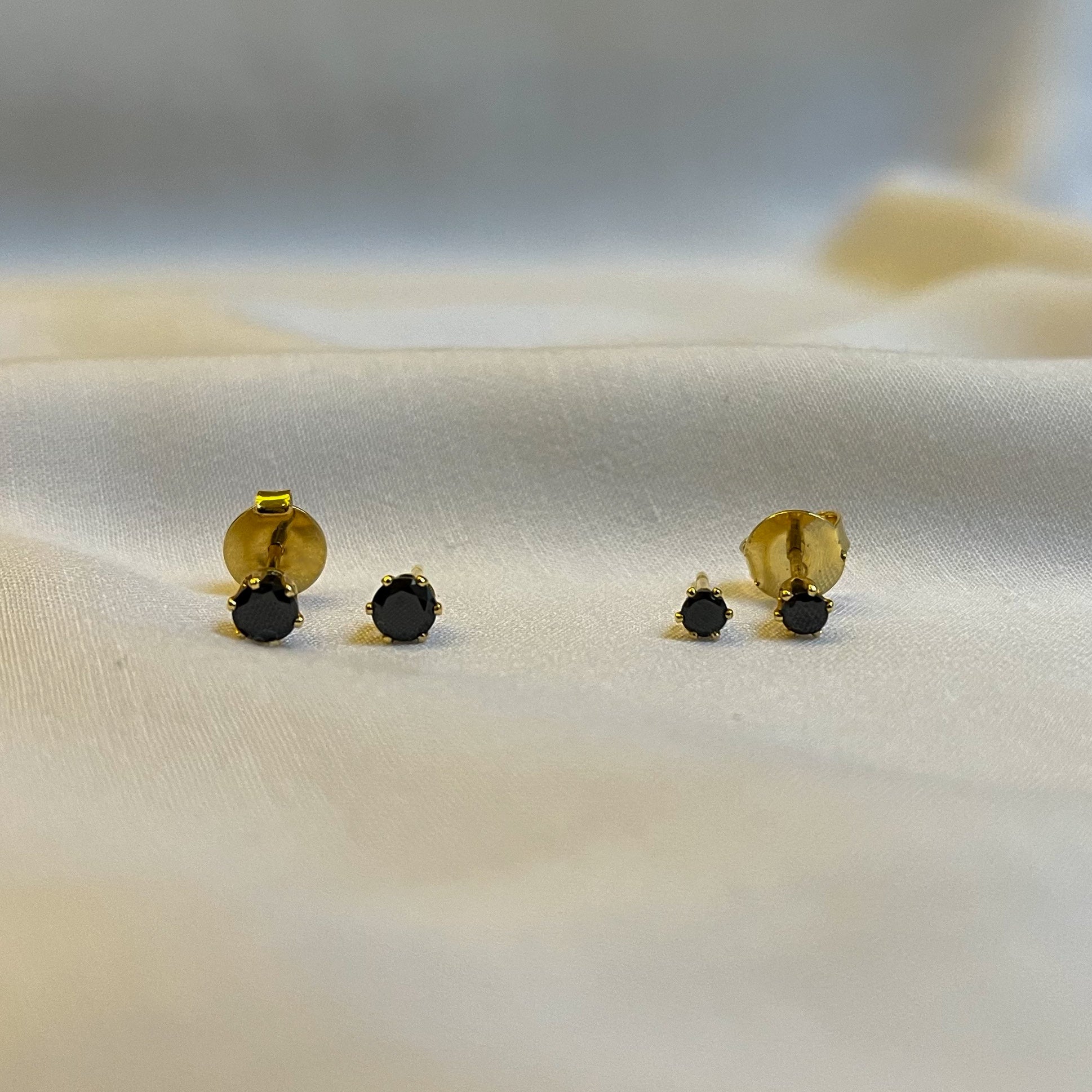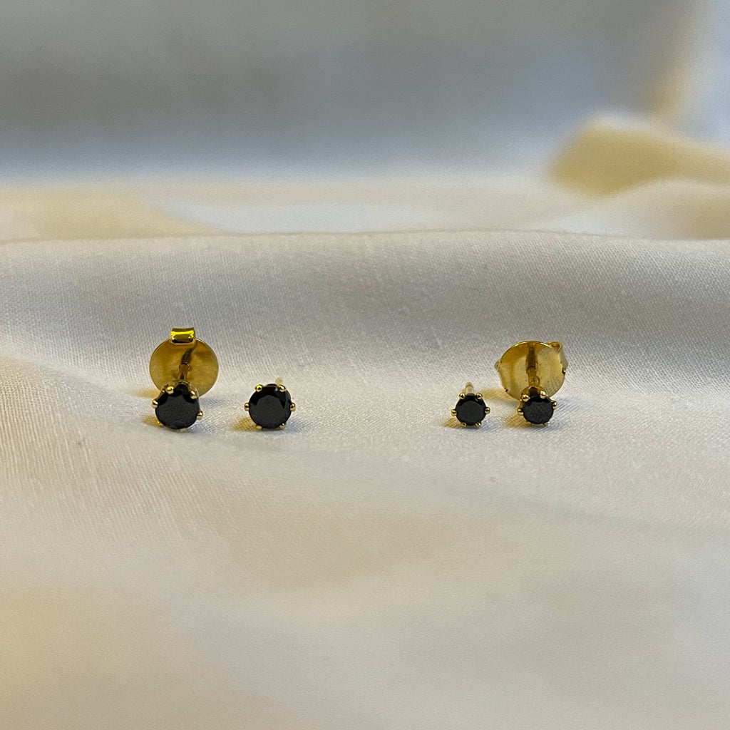 Brinco feminino dourado com zircônia preta. Perfeito para composições práticas e fáceis.