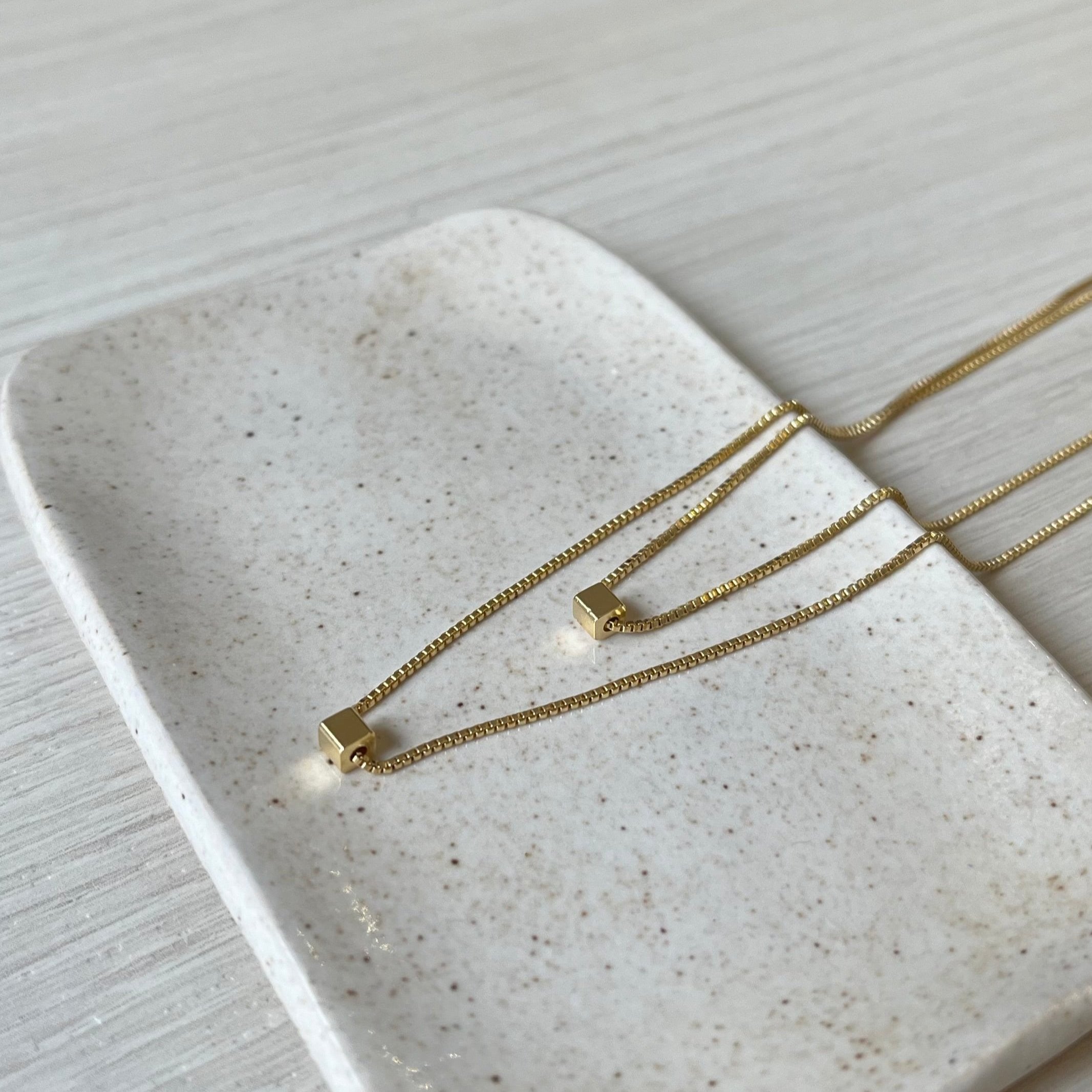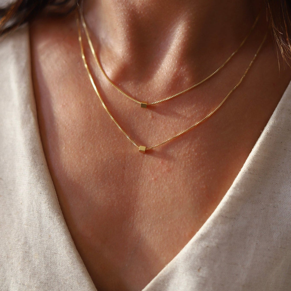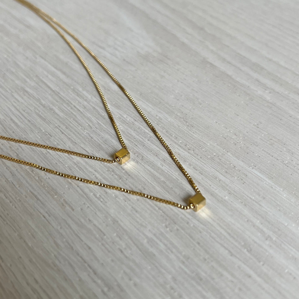 O Colar Duetto é uma combinação perfeita de moda e modernidade. Com dois colares fixos de corrente clássica veneziana fininha, ele exibe um mini pingente cubo, super atual. Ideal para quem busca um toque delicado. Esse colar é a escolha perfeita para destacar seu estilo com sutileza.