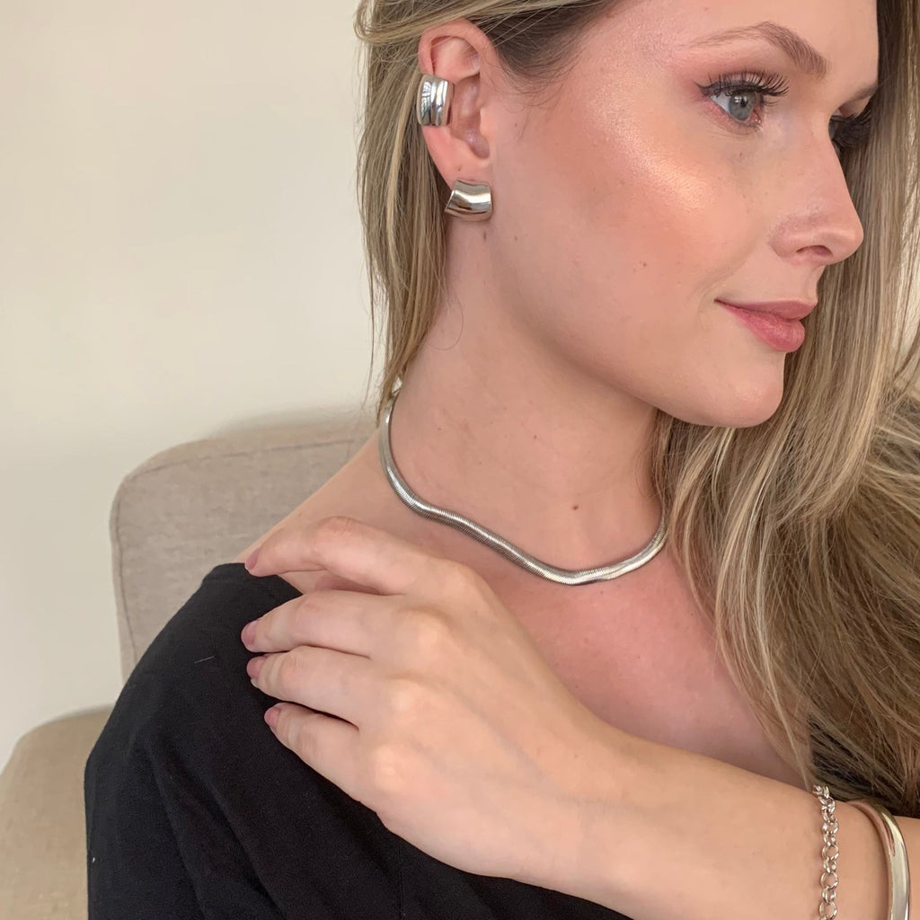 Piercing feminino pratedo super largo. Não é preciso ter furo para usar, piercing fake. Acessório perfeito para comunicar sofisticação e modernidade.